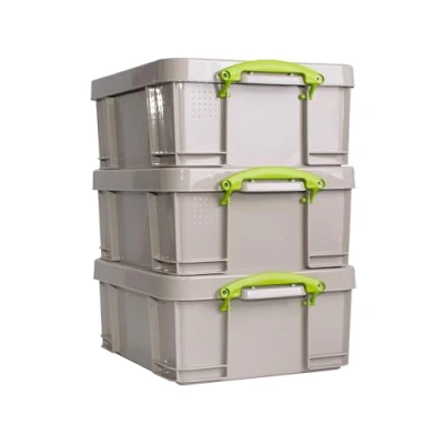 Clip lock handles to secure the lid Music storage solution - Holds 44 DVDs or 93 CDs Portable plastic box Other uses - Knitting box - Electrical DIY equipment