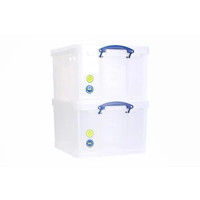 2 x 42 litre Really Useful Plastic Storage Box These stackable boxes are durable and great for safely and securely storing everyday items Made in the UK Distinctive and practical really useful box lift-lock handles