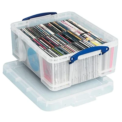 Part of a wide range of Really Useful Storage Boxes Holds up to 93 CD’s or 44 DVD’s Stackable with the 18 & 35 litre Really Useful Box Ideal for storage & transportation or anything homeware related Transparent to identify contents of the box. Strong, stackable, storage box, complete with lockable lid External Dimensions: L480xW390xD200mm Internal Dimensions: L395xW335xD170mm