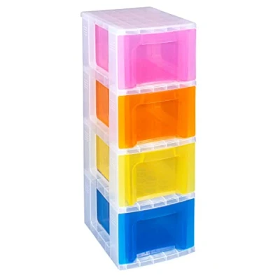 Really Useful Plastic Storage Box Slimline Tower 4x6 Litre Clear Frame with Rainbow Drawers