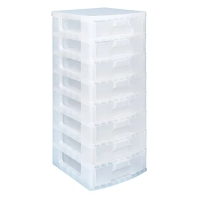 Really Useful Plastic Storage Box Tower 8x9.5 Litre Clear Frame with Drawers