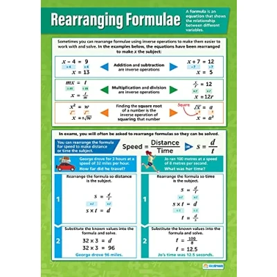 Rearranging Formulae Maths Charts Gloss Paper measuring 594 mm x 850 (A1) Math for the Classroom Education Posters by Daydream