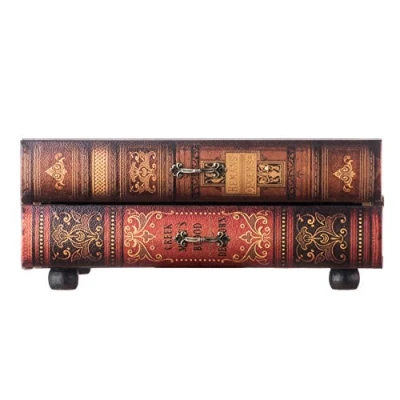 DETAILS: Dimensions: H 13 cm x W 30 cm x D 21 cm - Color: Brown – Material: MDF, polyurethane - Cod. RE6276 SUITABLE AS A TABLE OBJECTGLOVE: It is useful as a storage box to keep small objects such as tricks, jewelry, hair clips and elastic bands in order. On the desk is useful for organizing stationery and post-it items VINTAGE STYLE: The structure of the box and the graphic reminiscent of a pair of ancient books. It is ideal as a retro furniture accessory. You can combine it with antique furniture and a classic bedroom GIFT IDEA: The Rebecca table organizer is a useful accessory, perfect to give as a gift such as anniversaries and birthdays, Christmas MADE IN PU COATED MDF: Rebecca book box is made of durable and quality MDF. The external polyurethane coating makes the surface of the casing easy to clean and waterproof. Easy to clean, simply wipe with a dry cloth