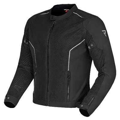 Polyester 450D, steel mesh - durable and breathable materials Power flow system: extensive mesh inserts throughout the jacket area ensure efficient ventilation Easy-fit system: adjustable sleeves and waist circumference ensure a snug fit to the silhouette Pro shield system - elbows and shoulder protectors level 2 Easy connection: easy connection of the jacket with trousers thanks to the built-in zip