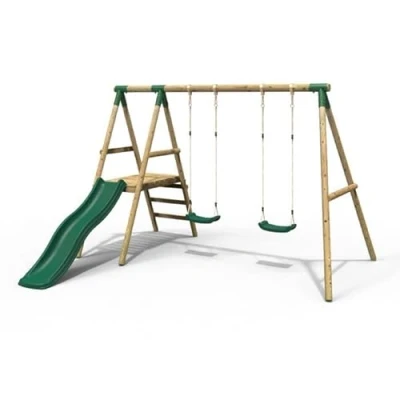 Amazon🟢 WEATHER-RESISTANT - Pressure treated timber for a resiliant and weather-resistant playset that can stand up to the wear and tear of play time 🟢 STURDY SWING ARM - Two standard plastic swings come with soft-feel ropes to ensure a comfortable grip with minimal friction. Height of swing is adjustable, allowing you to choose the right positioning for your child 🟢 FUN WAVY SLIDE - 6ft injection-moulded plastic slide turns into a fun wavy waterslide with just a few simple modifications (hose attachment not included) 🟢 ROBUST WOODEN CONSTRUCTION - Constructed of pine wood, this sturdy playset is built to last. Brackets are powder-coated for added durability 🟢 MARKET LEADERS - Rebo are market leaders at producing high-quality outdoor kids' play equipment including wooden swings and climbing frames for the garden