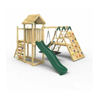 Amazon🟢 DOUBLE THE FUN - Double-width climbing tower for double the fun, double the adventure and even more ways of getting to the top! 🟢 TALL WOODEN PLATFORM - Sturdy wooden platform stands at an impressive 1.2m, providing the ideal raised play area for kids 🟢 FUN WAVY SLIDE - Durable 8ft injection-moulded slide attached to sturdy wooden platform that can be turned into a waterslide with just a few simple modifications (hose attachment not included) 🟢 ROBUST WOODEN PRODUCT - Sturdy wooden design is built to last, standing up to all the wear and tear of playtime 🟢 CHOOSE YOUR SET - With multiple configurations available, choose the playset that works best for you and your family