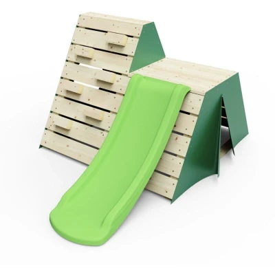 Rebo® Mini Wooden Climbing Pyramid Adventure Playset and Slide Green OutdoorToys Pressure Treated Timber Secret Hideaway, Rocks