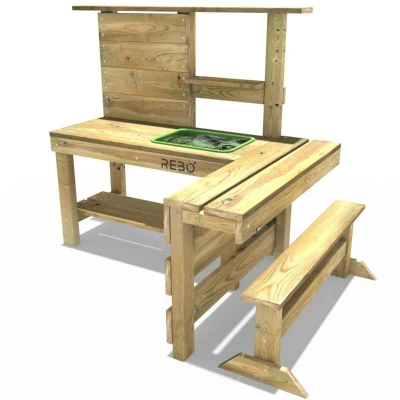 General description Mud, glorious mud! Kids love it, and with the new range of Rebo Muddy Mischief outdoor play kitchens, they’ll be able to have those mud pies ready in no time. Made from pressure treated timber, these sturdy all-weather kitchens have been designed to withstand all the rough and tumble (as well as mud) kids can throw at them. Installation Tools required for assembly: drill, tape measure, and screwdriver.