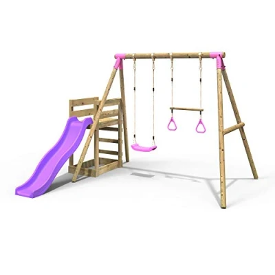 Amazon💗 WEATHER-RESISTANT - Pressure treated timber for a resiliant and weather-resistant playset that can stand up to the wear and tear of play time 💗 STURDY SWING ARM - Trapeze bar with gym rings and standard swing with adjustable soft-feel ropes, allowing you to choose the right fit for your children 💗 EASY ASSEMBLY - Frame comes pre-drilled for quick and easy assembly. All fixtures, fittings and instructions provided 💗 FUN WAVY SLIDE - 6ft injection-moulded plastic slide turns into a fun wavy waterslide with just a few simple modifications (hose attachment not included) 💗 MARKET LEADERS - Rebo are market leaders at producing high-quality outdoor kids' play equipment including wooden swings and climbing frames for the garden
