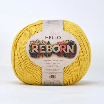 Cotton yarn perfect for crochet and knitting DK weight (3) 200g 7oz 313m 324yrds Composition: 85% Recycled Cotton, 15% Other Recycled Fibers Crochet Hook: 2,75 to 3,0mm – US C-2 Knitting Needles: 4,0 to 5,0mm – US 6 to 8 Knit Gauge: 4in x 4xin: 19sts x 26r Crochet Gauge: 4in x 4xin: 16sc x 21r