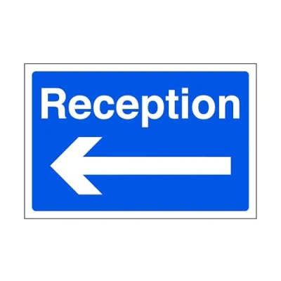 Reception safety sign "arrow left" - safety sign - Indoor/outdoors Safety Sign to meet legal obligations and foster compliance. Highly durable, 3mm Dibond aluminum. Rust-free, waterproof, and windproof. Ideal for indoor and outdoor use, offering resistance to corrosion and damage. Ensures longevity and quality signage. Measuring 300mm x 200mm, our sign ensures optimal visibility when mounted at eye level for viewing within 7 meters, effectively enhancing safety and communication on the road network This sign conforms to EN ISO 7010:2012 standards, featuring a centrally positioned black pictogram or text against a contrasting background, ensuring clear communication and adherence to safety regulations Experience peace of mind with our 4-year warranty for indoor and outdoor use. We're dedicated to quality, ensuring durability and reliability in every product. 10mm radius corners, our signs ensure safety during post-mounting, eliminating sharp edges and reducing accident risks, thereby prioritizing safety in all installations