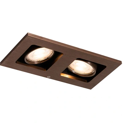 QAZQA Recessed Spotlight Dark Bronze Rectangular 2-Light Rotatable and Tiltable - Qure Video Refresh your interior with the Qure recessed spotlight. Made of aluminium and finished in bronze, it is a must-have for a modern interior. It has a height and width of 10 cm and a length of 19 cm. Don't forget to order the necessary GU10 light source, it is not included. Make sure you have enough space to install this spotlight: you need a hole of 18 cm by 9 cm for this. This recessed spotlight is dimmable, but a dimmer is not included. Want to point it at something else? You can! Qure is adjustable. Don't hesitate any longer and go for Qure! Bulb holder: GU10 . Max 2 x 10 W, 230 V Suitable for: LED Connecting voltage: 220V/230V Protection class: IP20 Dimmable, dimmer not included,No, without cord and plug Lightsource: Exclusive The QAZQA Recessed Spotlight Dark Bronze Rectangular 2-Light Rotatable and Tiltable - Qure is Bronze. Suitable living spaces for this lamp are: Indoor lights, Dining