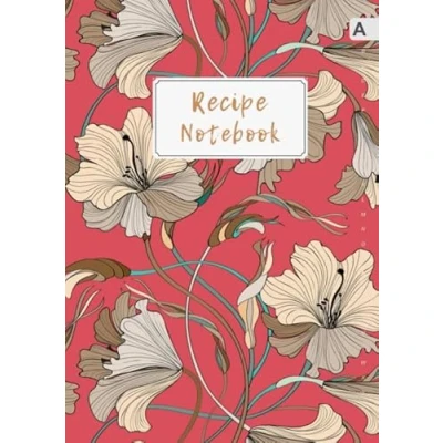 Recipe Notebook: A4 Book Organizer Large with Alphabetical Tabs Light Gold Hand Drawn Flower Design Red