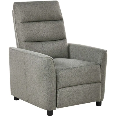 Living Room Armchair with Manual Reclining. Experience ultimate relaxation with this classic recliner armchair, designed with a manual mechanism offering three adjustable positions. Upholstered in robust, long-lasting fabric with a neutral colour palette, it harmonizes effortlessly with any decor. Its understated traditional design and minimalist elegance make it a perfect addition to living rooms, bedrooms, or reading nooks, combining style and functionality for everyday comfort. Details: Product Type: Reclining Chair Style: Minimalist General Color: Green, Black Shade: Light Green Material Type: Fabric Main Material: Fabric Additional Material: Synthetic Material Filling Material: Foam Legs material: Metal Seat Material: Fabric Material Composition: 100% Polyester Adjustment Type: Manual Arm Style: Track Armrests: Yes Leg Caps/ Pads: Yes Pattern: Solid Reclining: Yes Seat Construction: Sinuous Springs Seat Foam Density: 28 kg/m3 Dimensions: Armrests Height: 55 cm Depth: 83/141/161