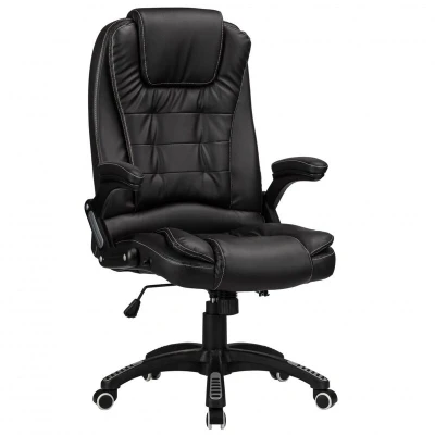 Reclining Office Chair with High Back and Luxury Faux Leather Black