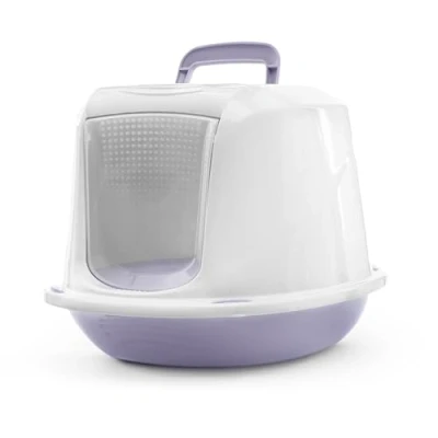 Record Arena+ Closed Cat Litter Tray with Handle and Filter, Lilac 57 x 39.5 38 cm, Plastic Toilet Modern Design, Easy to Clean, Made in Italy
