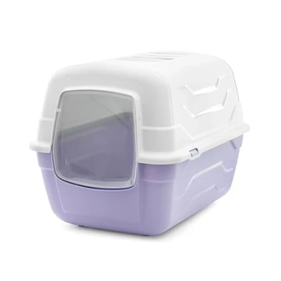 Record Closed Cat Litter Tray "To Go" with Filter and Scoop, Lilac 52 x 40 h cm Plastic Toilet Modern Design, Easy to Clean, Made in Italy