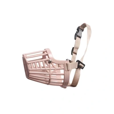 Record Dog Muzzle Made of Plastic with Adjustable Nylon Strap Practical Closure Clip Size XXL Beige
