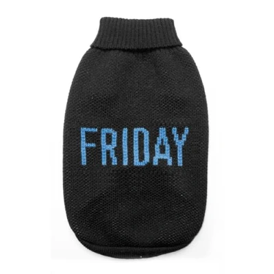 Record Dog Sweater Everyday Soft High Neck with Elasticated Waistband, Embroidered 'Friday' Black, S Back Length 35cm