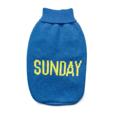 Record Dog Sweater Everyday Soft High Neck with Elasticated Waistband, Embroidered 'Sunday' Blue, M Back Length 40cm