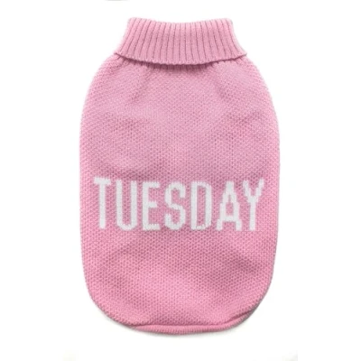 Record Dog Sweater Everyday Soft High Neck with Elasticated Waistband, Embroidered 'Tuesday' Pink, M Back Length 40cm