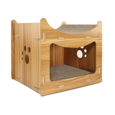 Record Pagoda Cat Scratching Post Wooden and Cardboard Frame with Catnip Rectangular Shape Dimensions: 45 x 30 35h Comfortable Bed