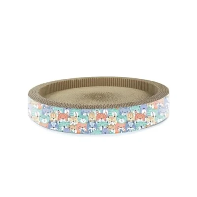 Record Round Cardboard Scratching Post with Catnip Dimensions: Diameter 40 x 6H cm Cylindrical Shape Toy for Cats and Comfortable Kennel Havana Colour Pattern