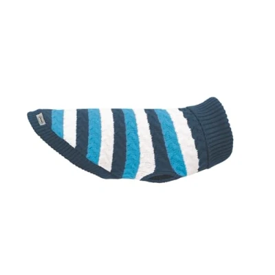 Record Sweater for Dogs Model Him & Her. High Neck, White Stripes Pattern with Blue/Blue Shades, Leash Hole and Paw Loops Blue, XS Back Length 30 cm
