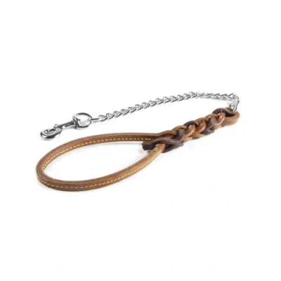 Record Three Strand Handle Leather Lead with Steel Chain Size M Length 60cm Brown and Beige Ideal for Medium Large Dogs