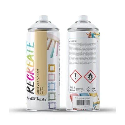 RECREATE Antique Cream Gloss Spray Paint For Wood, Metal, Plastic Quick Drying, Smooth, Durable, Easy to Apply Suitable Indoor/Outdoor Furniture, Craft, Doors, Ornaments, Pots, Frames