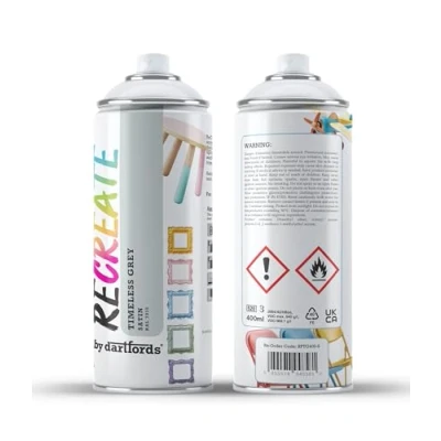 RECREATE Timeless Grey Satin Spray Paint For Wood, Metal, Plastic Quick Drying, Smooth, Durable, Easy to Apply Suitable Indoor/Outdoor Furniture, Craft, Doors, Ornaments, Pots, Frames