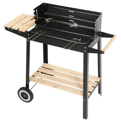 Rectangular Trolley Charcoal BBQ Grill with Shelves & Wheels 85 x 80 41cm