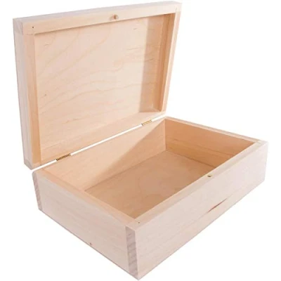 Rectangular Wooden Box with Lid & Bolt Closure 20 x 15 6.5 cm Gadgets Trinket Keepsake Memory Jewellery Gift Craft Storage Unpainted Untreated Plain Linden