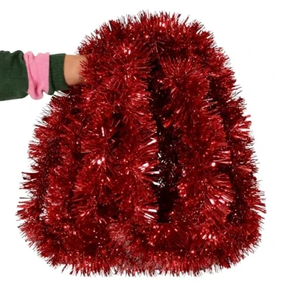 Red Christmas Tinsel Garland 10 metres Xmas Metallic Chunky for Tree Decorations Supplies 33ft Long