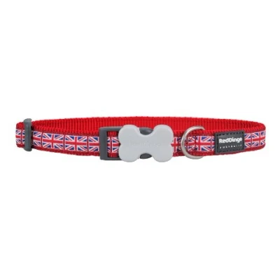 Red Dingo Bucklebone Dog Collar Design, Union Jack Flag on Red, Large 25mm