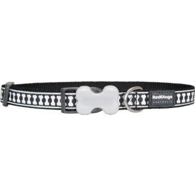 Red Dingo Bucklebone Dog Collar Reflective Bones, Black, X Small 12mm