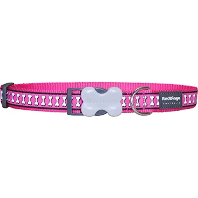 Red Dingo Bucklebone Dog Collar Reflective Bones, Hot Pink, Small 15mm