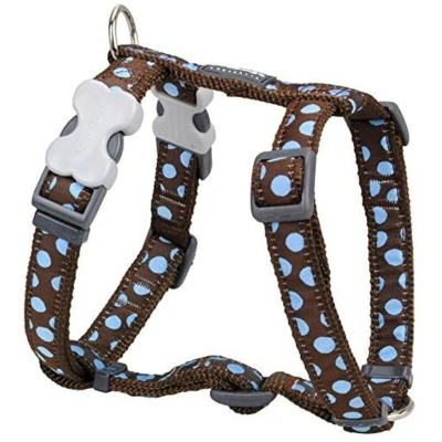 Red Dingo Classic Dog Harness Design, Blue Spots on Brown, Medium 20mm
