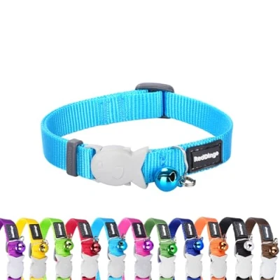 The classic Red Dingo blue cat collar features a fish-shaped clasp that opens automatically for your pet's safety. Its bell alerts other animals to its presence, while the 20° cut edges ensure maximum comfort without irritation.