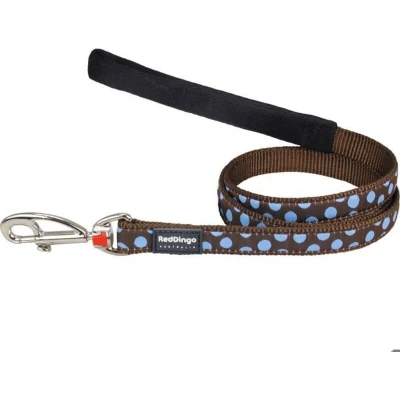 Red Dingo Dog Lead 1.2m Design, Blue Spots on Brown, Size Small (15mm x 1.2m)