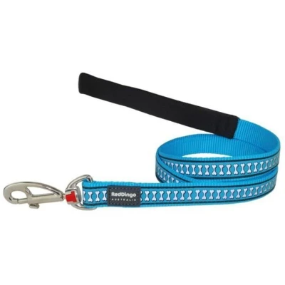 Red Dingo Dog Lead 1.2m Reflective Bones, Turquoise, Size Medium (20mm x 1.2m)
