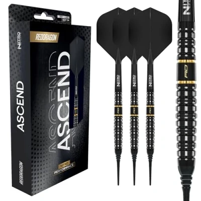 RED DRAGON Darts Ascend Series 20g Barrel/ 22g Full Weight Soft Tip Torpedo Dart Set 90% Professional Tungsten Nitro Flite Integrated Flight/Shaft, Flights & Stems