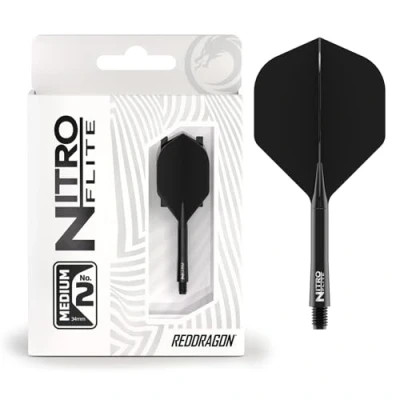 RED DRAGON Darts Nitro Flite Integrated Flight & Shaft System No.2 Shape and Design Black Colour, Medium Length