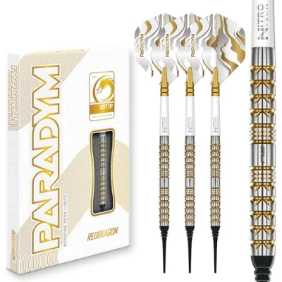 RED DRAGON Darts Paradym Gold Series 18g Barrel/ 20g Full Weight Professional Soft Tip Set 90% Tungsten Parallel Barrel Includes Dart Flights & Stems