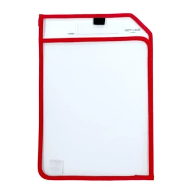 Red Edge Clear Dry Erase Write and Wipe Reusable Sleeve Pocket These help save on paper in the classroom or workplace. Great teaching supplies and classroom resources. Take notes and memos using a dry wipe marker. Easily remove and reuse when finished. Keeps documents safe and secure Size: 255 x 375mm. Ideal for A4 Paper. 300 Micro Thickness.