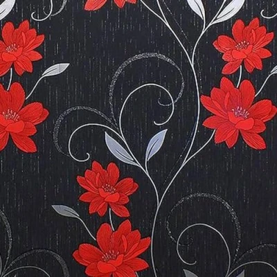 Red Flower Wallpaper Textured Metallic Glitter Effect Vinyl Floral Silver Black Grey Modern