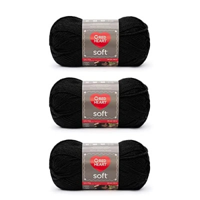 Red Heart Soft Black Yarn 3 Pack of 141g/5oz Acrylic 4 Medium (Worsted) 256 Yards Knitting/Crochet
