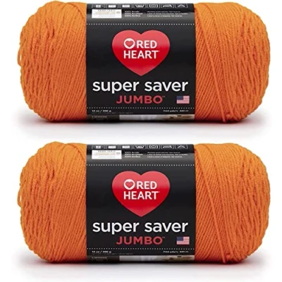 Red Heart Super Saver Jumbo Pumpkin Yarn 2 Pack of 396g/14oz Acrylic 4 Medium (Worsted) 744 Yards Knitting/Crochet