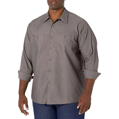 Red Kap Men's Industrial Work Shirt, Regular Fit, Long Sleeve Utility Button, Grey, XL