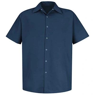 Red Kap Men's Short Sleeve Specialized Pocketless Work Shirt, Navy, X Large